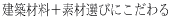 建物に使われる幾多の素材・建材・アイテム、私たちは国産品・輸入品を問わず取り入れ、その住宅1つ1つのコンセプト・デザインに合ったものを提案させて頂きます。いかにシンプルで美しく耐久性があり、かつ安価であるものを探し出しせるかに一生懸命こだわっています。